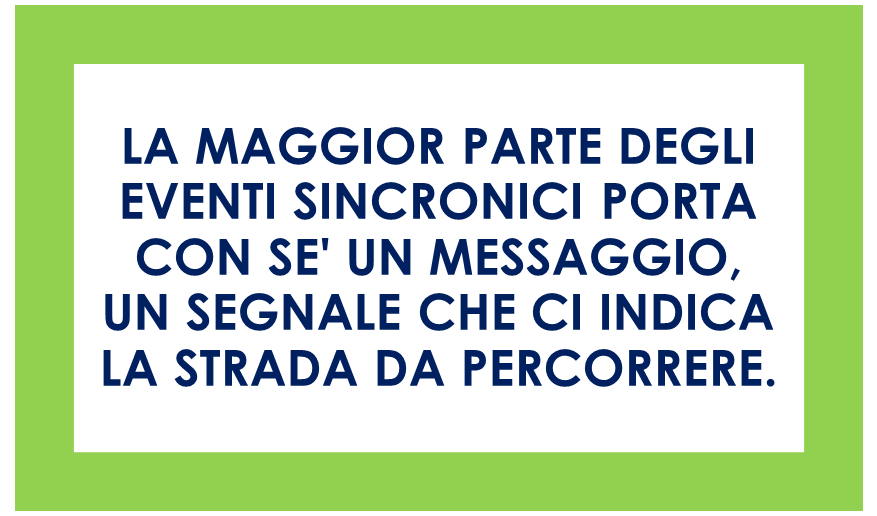 In queste fasi delicate, sembra quasi che il “cosmo” voglia farci pervenire un segnale, una convalida o un sostegno, come ad esempio, la scoperta casuale di un libro che risponde ai nostri quesiti esistenziali più urgenti, un lampo intuitivo che ci rivela la decisione più corretta da prendere. Tutte queste coincidenze possono essere lette come degli autentici “indicatori” che ci possono orientare nella complessità dell’esistenza.