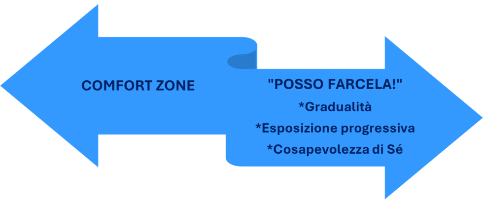 Ovviamente, il punto non è farsi sopraffare o schiacciare da questa marea emotiva. L’obiettivo è imparare a gestire e contenere queste sensazioni, senza permettere che il loro volume eccessivo ci paralizzi. Per riuscirci, è fondamentale che il transito dalla sicurezza della comfort zone alla novità avvenga in modo graduale, e non repentino.